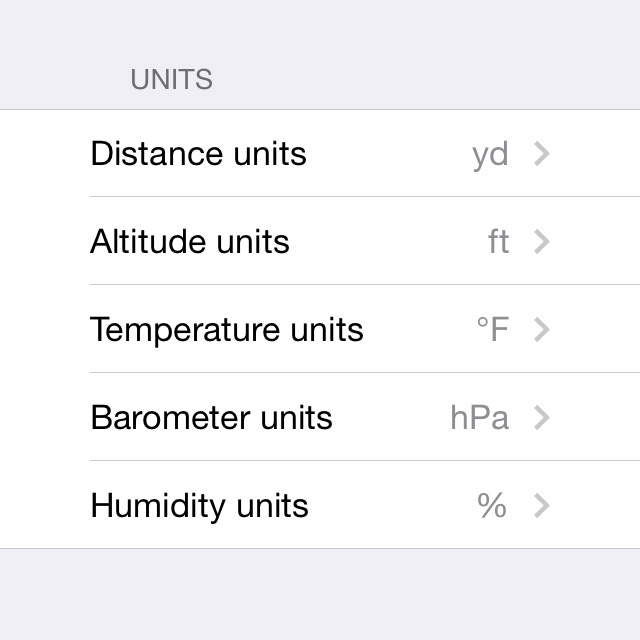 Fahrenheit or celsius? Meters or feet? Kilopascals or Inches of mercury? We've got you covered. Myardage includes user configurable units for the temperature, altitude, barometer, humidity, and any distances entered. Furthermore, Myardage will automatically convert any information you have already entered into the relevant unit upon changing your unit preferences.